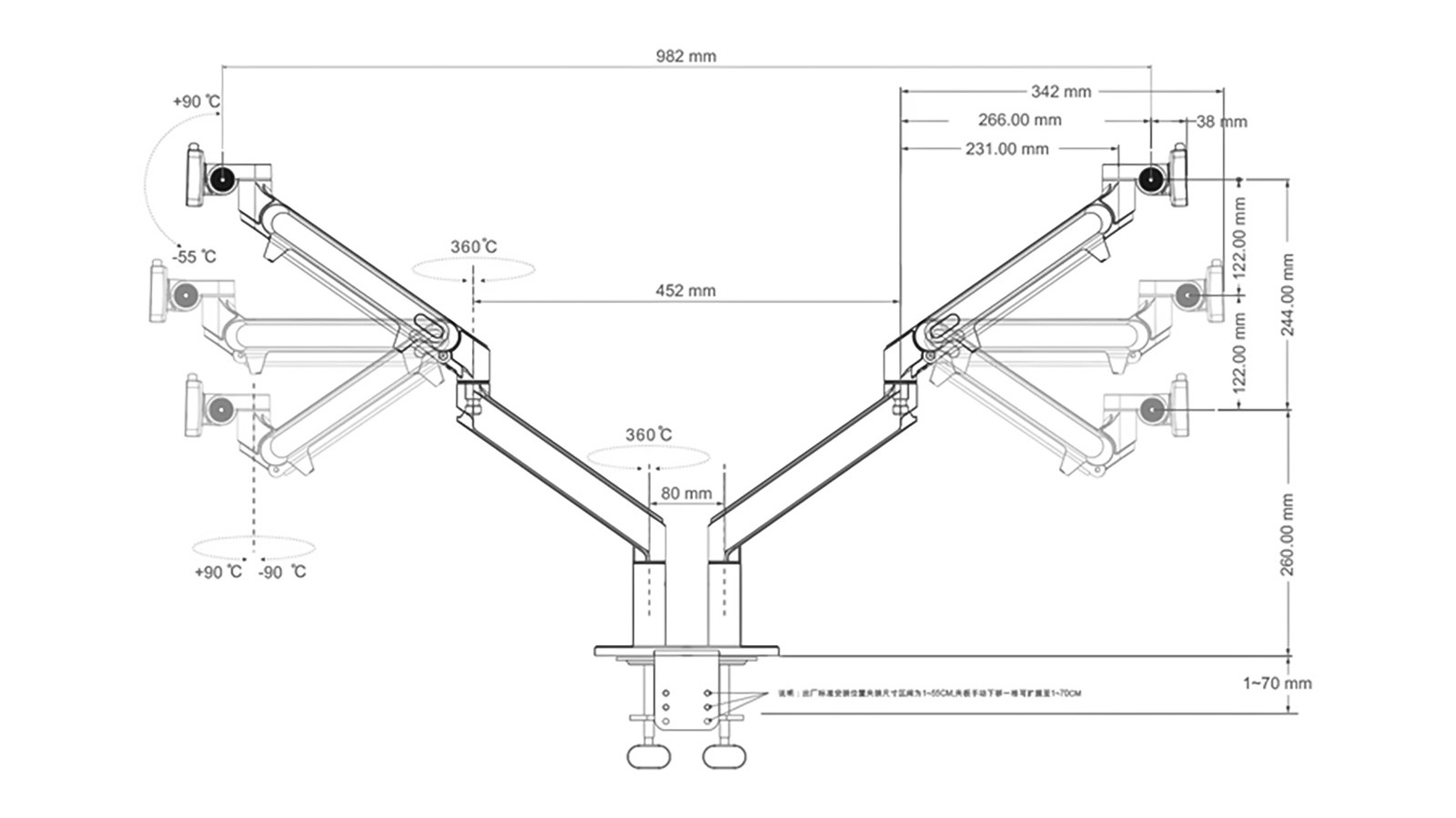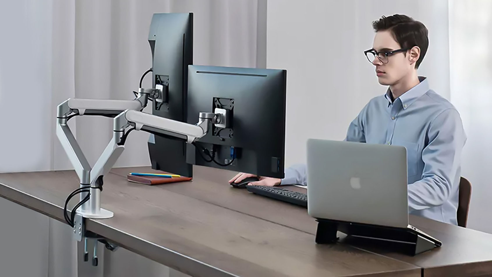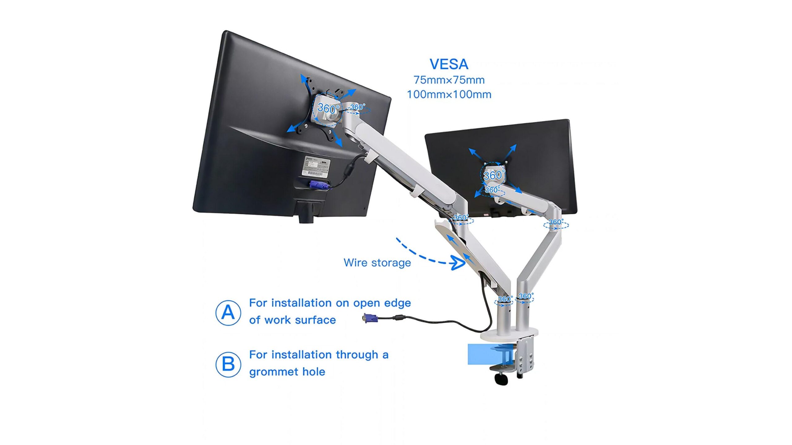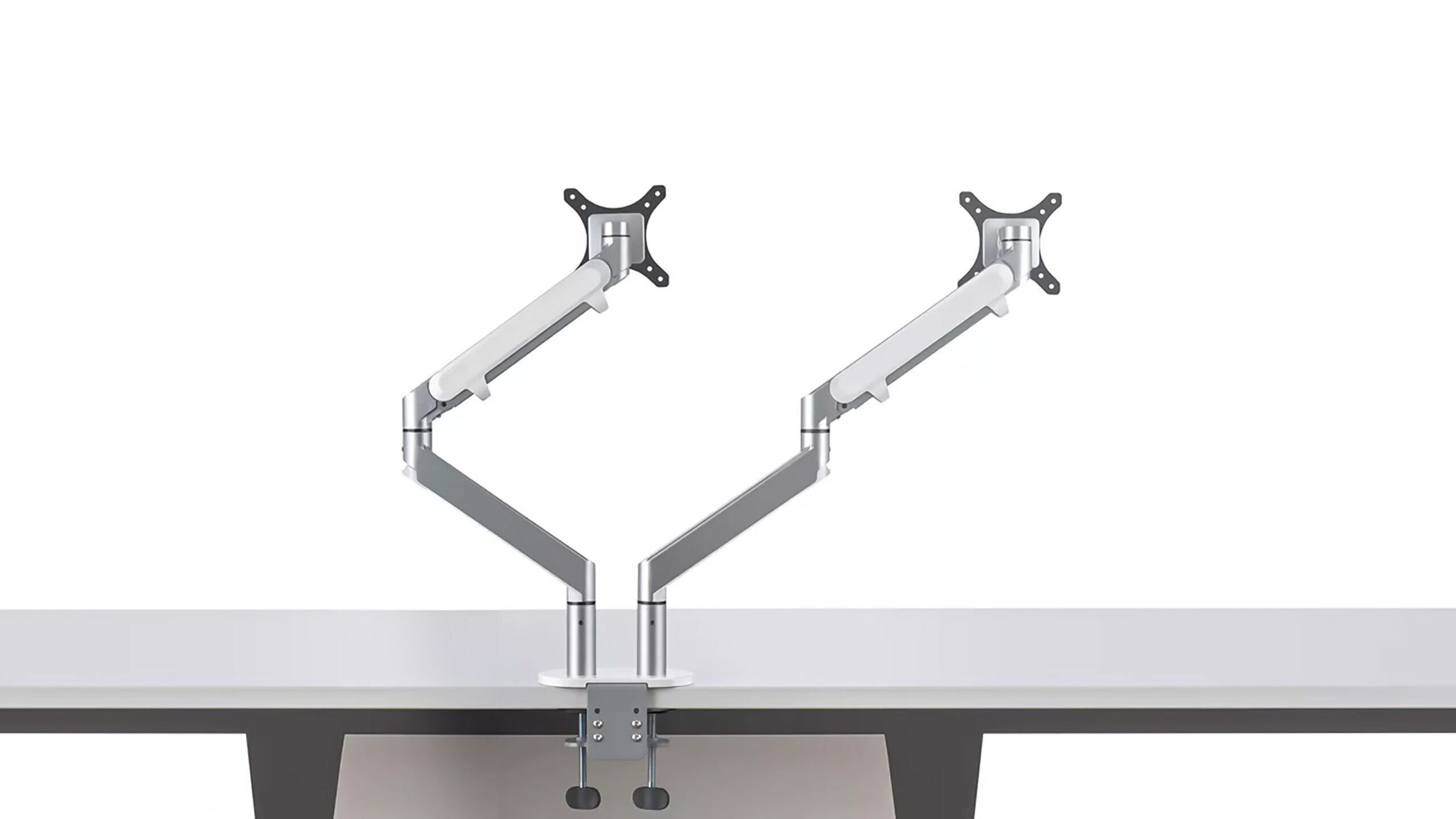 Fully adjustable double monitor arm, built with strong ABS and aluminum alloy.